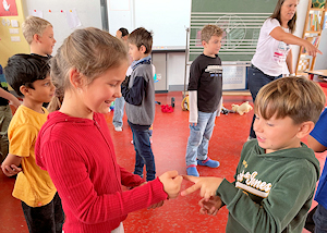 In vier Lerneinheiten zu 45 Minuten lernten die Kinder und Jugendlichen der fünften bis zehnten Klassen auf spielerische Art und Weise Französisch, wobei die Fünftklässler erstmalig in den Französisch-Unterricht hineinschnuppern durften.
