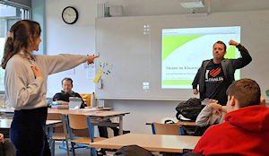 Wie lässt sich Nachhaltigkeit im Alltag junger Menschen umsetzen? Mit dieser Frage setzte sich kürzlich ein besonderes Theaterprojekt der 7ten Klassen auseinander. Das Stück ist durch eine Zusammenarbeit zwischen dem Sandkorn Theater und der Umwelt- und Energieagentur Kreis Karlsruhe entstanden und holt das Thema Umwelt direkt in ihren Lebensraum.