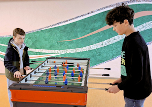 Nach diesem ernsten Ausflug nutzten viele die Zeit, um sich bis zur Abfahrt bei Tischtennis, Tischkicker und Basketball auszutoben.